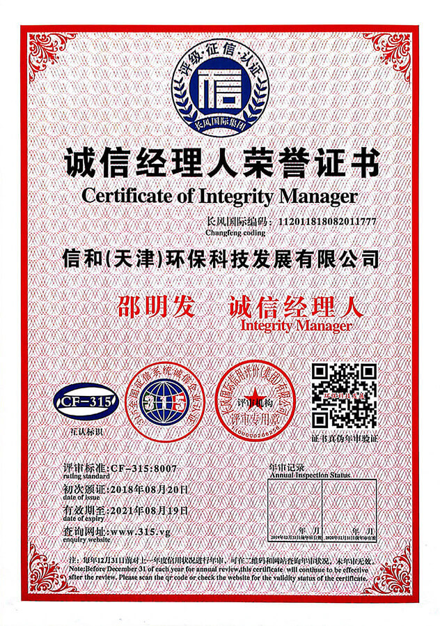 “質量就是生命”。信和重質量、守信用,被中國誠信品牌萬里行推薦“誠信示范單位”、“AAA資信等級”、“AAA級誠信經營示范單位”、“誠信經理人榮譽證書”、“誠信企業家榮譽證書”、“中國產品質量放心達標企業”、“誠信品牌聯盟會員單位”、“中國質量誠信AAA級品牌企業”、“中國百強優秀企業”、“節能環保推廣產品”、“全國科技創新企業”等榮譽稱號。